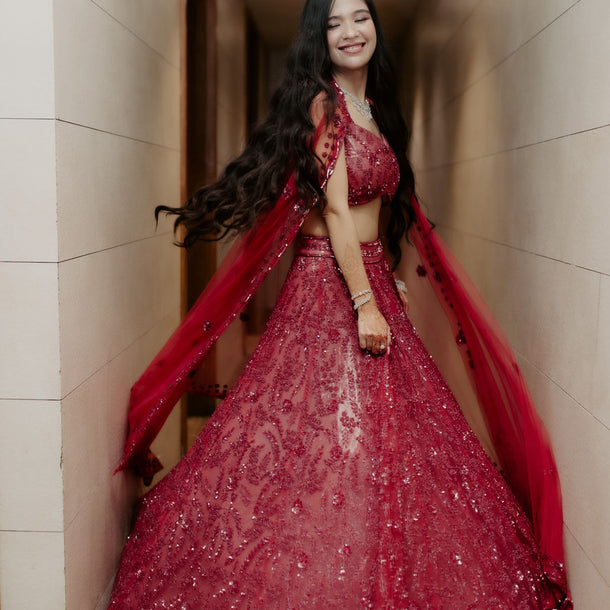 Enjoy personalized service and unique designs tailored to your style, with luxurious lehenga skirts featuring a voluminous ghera and the finest quality can-can for a stunning, comfortable look.